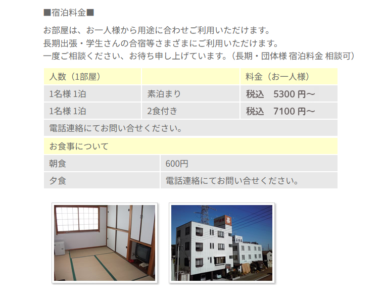 ビジネス滞在でもお気軽にご利用いただけるように、お得なプランをご用意しました。素泊まりから長期滞在まで目的に応じてお選びいただけます。スポーツ関連の合宿にもオススメです。団体利用の場合、よりお得なプランをご用意させていただいております。長期滞在にもお得なプランがございますので、お気軽にお問い合わせください。